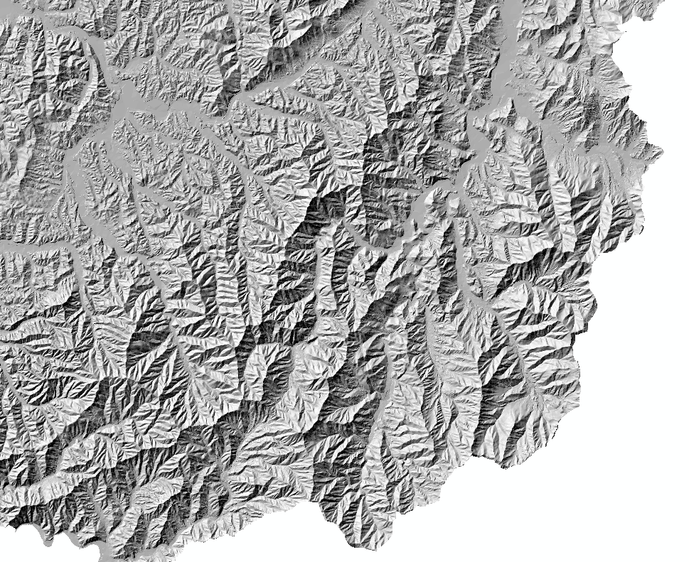 hillshade가 제대로 진행되었다면 아래와 같은 음영 기복도가 자태를 드러낼 것이다.
